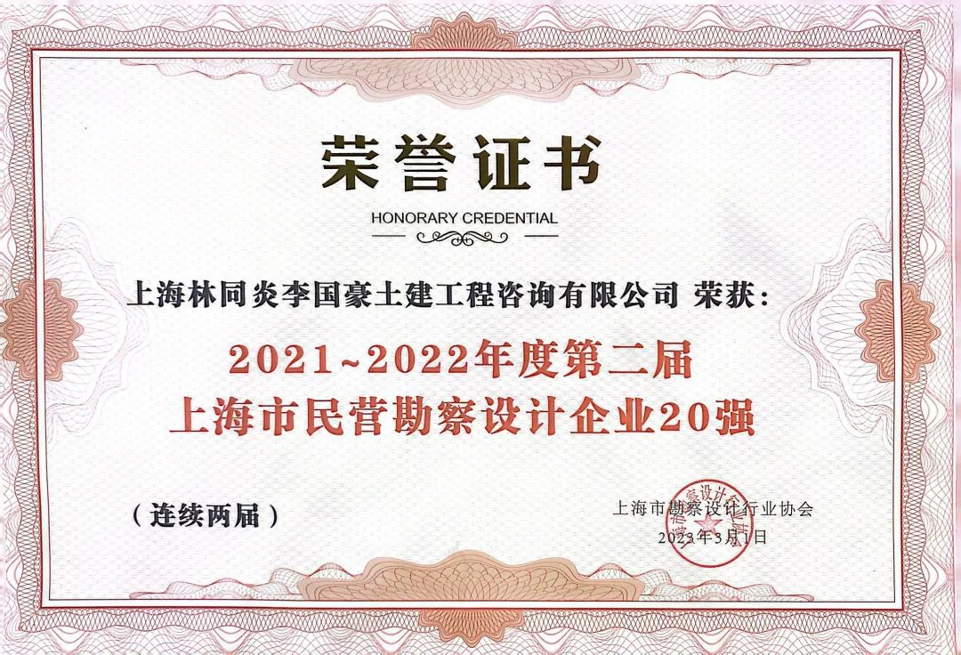 • 公司連續(xù)兩屆榮獲上海市民營(yíng)勘察...