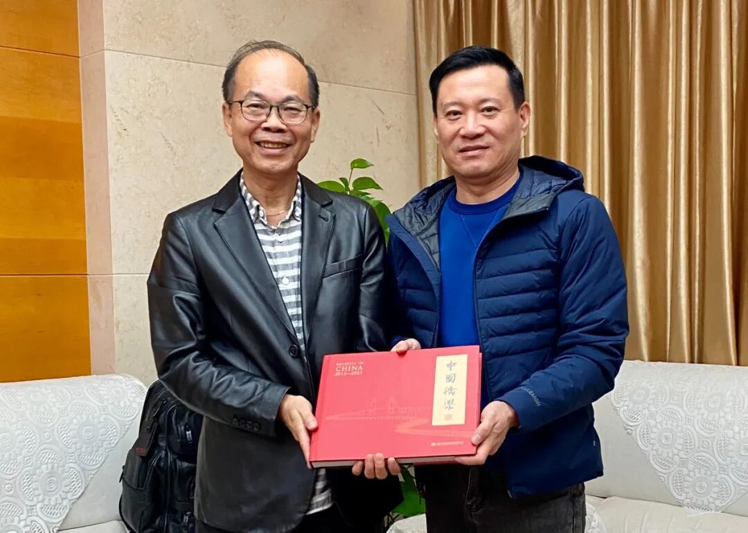 杜勤董事長向余立佐先生贈送《中國橋梁(2013-2023)》圖冊。