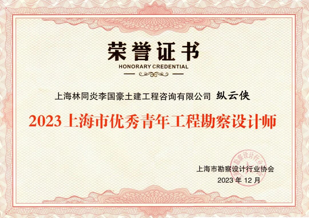 2023上海優(yōu)秀青年工程勘察設(shè)計師選樹活動經(jīng)過網(wǎng)絡(luò)投票、第一輪和第二輪專家評審、評委會現(xiàn)場討論,共選出建筑師、工程師和室內(nèi)外環(huán)境設(shè)計師三大類優(yōu)秀青年工程勘察設(shè)計師158名,林李公司第一建筑設(shè)計研究院副院長縱云俠同志喜獲“2023上海優(yōu)秀青年工程勘察設(shè)計師”殊榮。