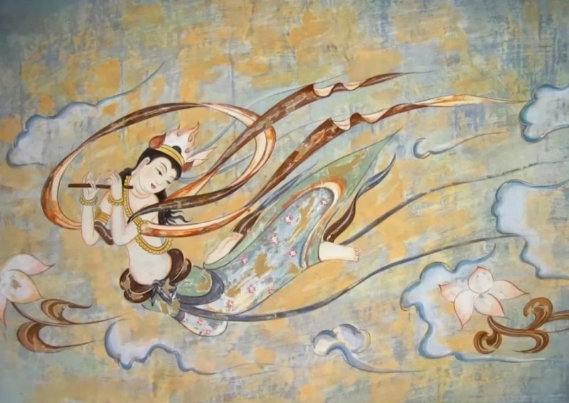 而敦煌壁畫中的“飛天”更是引人入勝,通過現(xiàn)代人對(duì)古樂器與壁畫舞蹈的還原,大家仿佛聽到了古時(shí)樂聲,看到了舞姿翩躚的盛景。