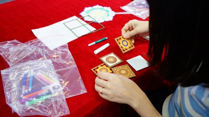 藻井寄托了古人關(guān)于“防火”的吉祥寓意,動(dòng)手制作木質(zhì)藻井冰箱貼,讓大家切實(shí)體會(huì)到它在古代建筑中的廣泛應(yīng)用,與其繁復(fù)、立體的華美藝術(shù)。